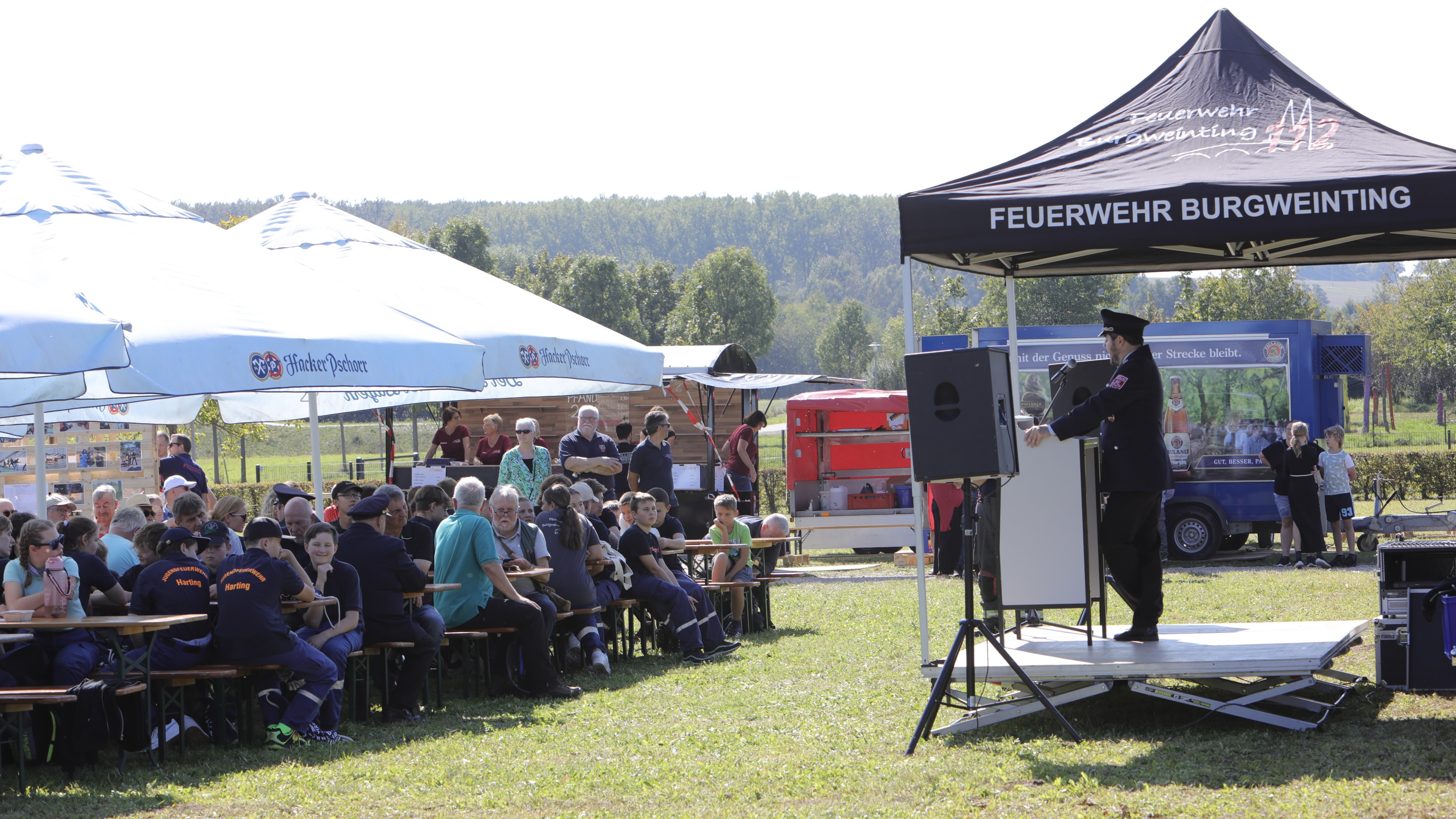 Eröffnet wurde der Festakt um 13:30 Uhr von Kommandant Stefan Prechtl, dabei begrüßte er die zahlreich erschienenen Besucher und Ehrengäste. Darunter waren viele Jugendliche der Ortsvereine und Jugendfeuerwehren aus dem Stadtgebiet.