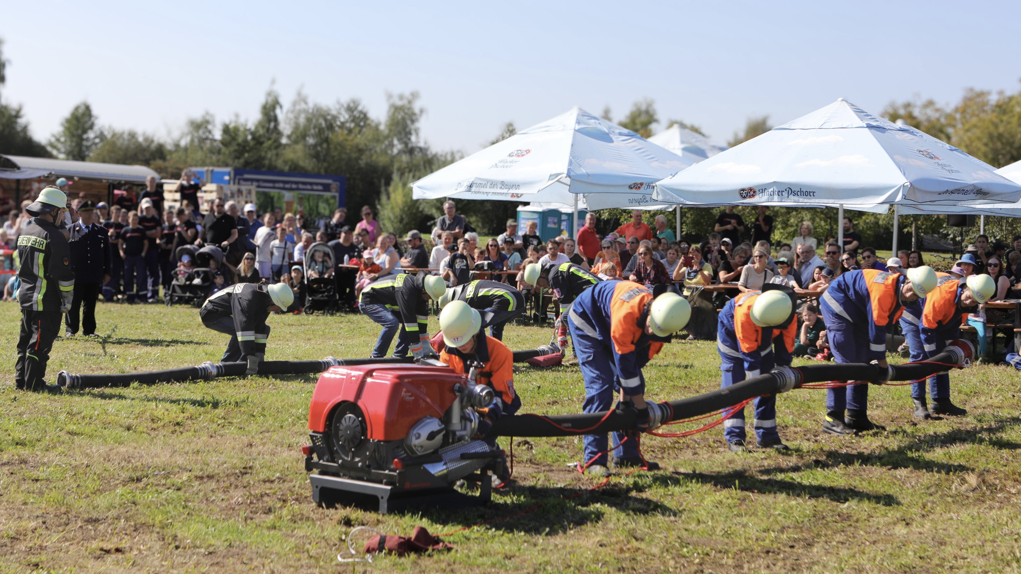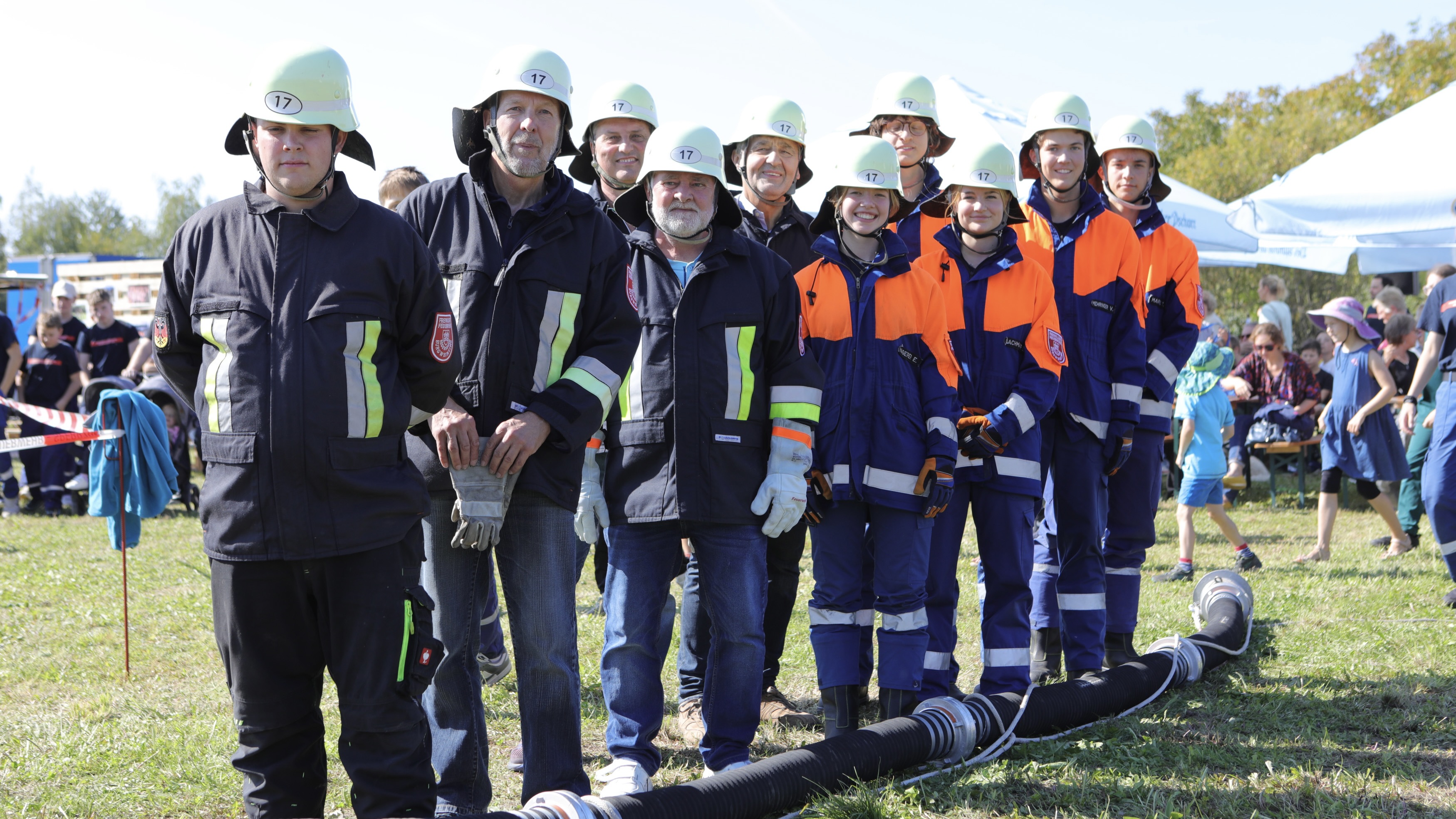 Die Ausbildung vor 50 Jahren war so nachhaltig, dass ein Teil der Gründungsmitglieder der damaligen Jugendfeuerwehr am 21. September 2024 an unserer Jubiläumsfeier ohne große Vorbereitung das Duell im Saugschlauchkuppeln gegen die aktuelle Jugendgruppe aufnahm.