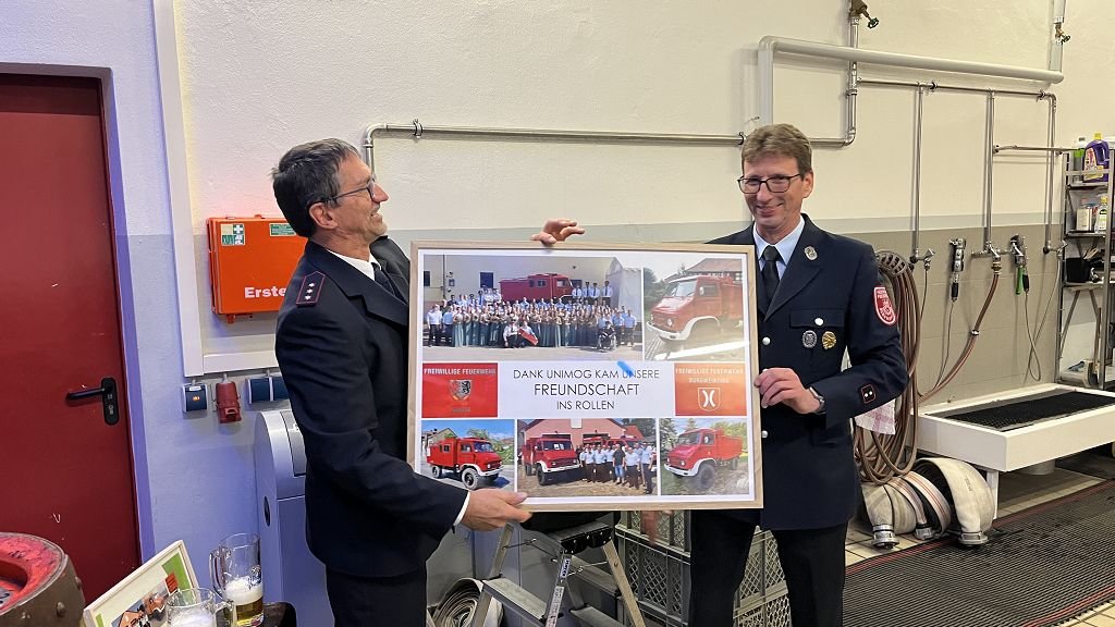 Es hatte sich zwischen den Feuerwehren eine erste Freundschaft angelassen, ein paar Jahre waren ins Land gezogen und zum 150-jährigen Gründungsfest 2023 in Burgweinting sprach man auch den Zedlitzern gerne eine Einladung aus. Es gab einige feuchte Augen, als die Überraschung glückte und die Thüringer mit dem Unimog auf einem Tieflader auf das Festgelände einfuhren und ihn zudem noch im Festzug präsentierten. Aber wiederum blieb der Bürgermeister „aus dem Osten“ standhaft, sodass der Unimog anschließend wieder den Heimweg suchte.