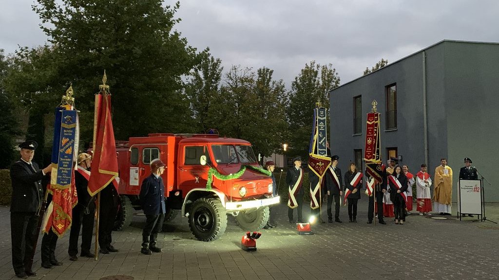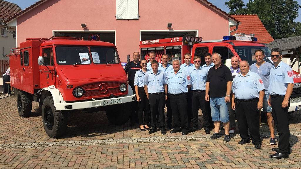 Im Juli dieses Jahres erreichte das TLF 8 dann per Tieflader seine angestammte Heimat, wurde von unseren älteren Kameraden auf Hochglanz gebracht und eine Fahrzeugsegnung am 5. Oktober war bald organisiert. Natürlich durfte eine Abordnung aus Zedlitz dazu nicht fehlen.