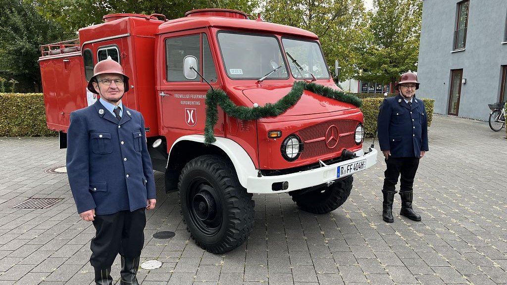 Der Zufall wollte es, dass die FF Zedlitz einen Tag der offenen Tür beging und eine Abordnung aus Burgweinting 2017 den Weg nach Thüringen für ein Wiedersehen gerne auf sich nahm ... da stand er im Sonnenlicht vor dem Gerätehaus Zedlitz, und für die Weintinger war schnell klar, „das Fahrzeug müssen wir wieder haben“. Unser Ehrenkommandant Gottfried Schindler wurde sogar auf eine Probefahrt eingeladen und attestierte einen sehr guten Zustand des über 50 Jahre alten Unimogs.